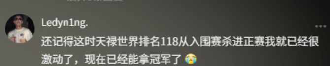 还记得这时天禄世界排名118从入围赛杀进正赛我就已经很激动了,现在已经能拿冠军了
