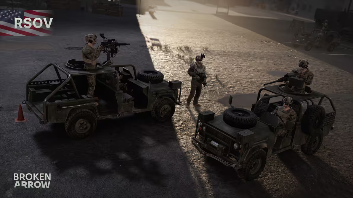 由美国空降兵部队采购的伞降班组突击车,伞兵们的好伙伴,同样得到了特种作战司令部的认可。虽然它的速度比不上游骑兵们的RSOV但是同样可以跑到120km/h的高速,且相比较RSOV,它拥有更好的装甲(虽然仍旧孱弱),和更多样的火力配置,除了传统的m2重机枪和40mm榴弹发射器之外,加特林先生的奇思妙想在现代化之后也被搬上了车,GAU19型12.7mm口径重机枪,拥有暴风骤雨般的射速,能给对手带来死亡之雨。此外还有ah64阿帕奇武装直升机同款m230lf型机关炮,没有步兵和轻装甲车辆会愿意面对这样的对手。