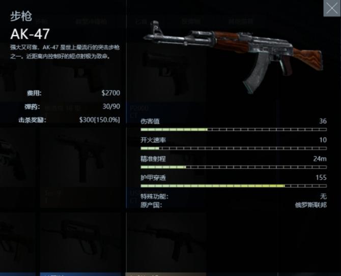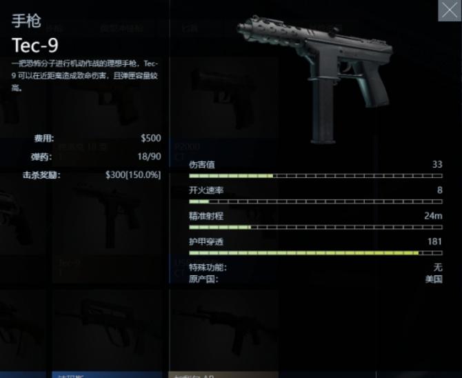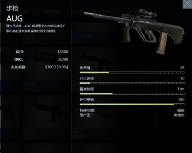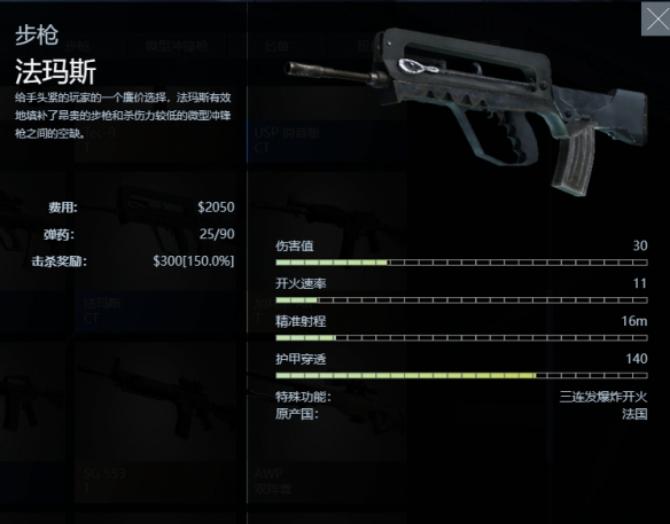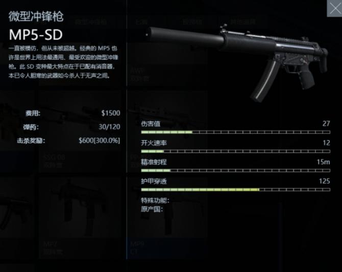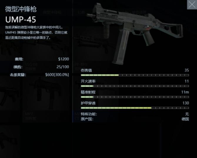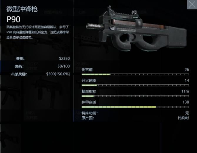 特点:价格低廉,适合 ECO 局。但精准度低,散布大,需贴脸使用。