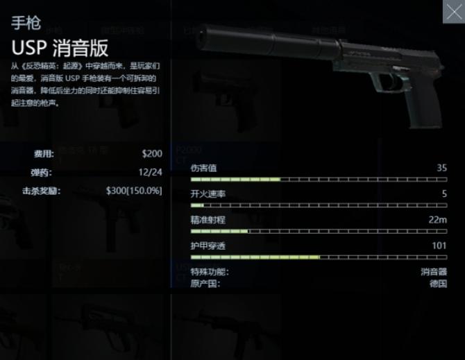 特点:消音器降低后坐力,盲射弹道扩散缩小 18%。中远距离两枪爆头(无甲),职业选手首选。