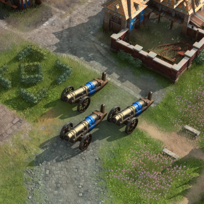 无需组装,自带轮式炮架的法国炮兵火药单位,部署即开火,比其他文明的投石机更具灵活性。对建筑物拥有+400伤害,可以快速摧毁敌方核心建筑。