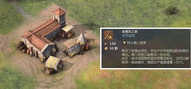 通过“雇佣兵之家”消耗橄榄油招募其他文明特色单位。