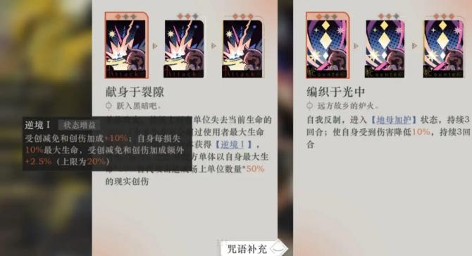 处于“逆境 I”状态下,诺谛卡有固定的10%的受创减免,以及10%创伤加成。
