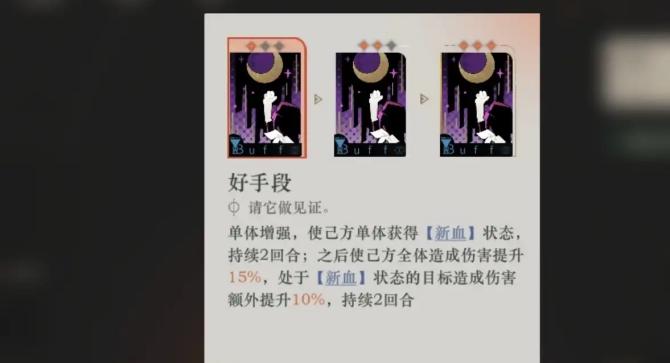 定位是增伤辅助,技能完美适配诺谛卡,咒语『好手段』1阶就有很高的增伤。