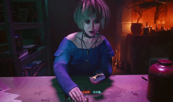 结局中V在米丝蒂那里打开魔方,发现的“恶魔”塔罗牌。恶魔牌象征着欲望、诱惑与束缚,这里几乎是明示,V被荒坂的所承诺的生存机会诱惑,最终陷入意识被公司囚禁的深渊。“恶魔”贯穿了结局,很好的体现了他的悲剧色彩。