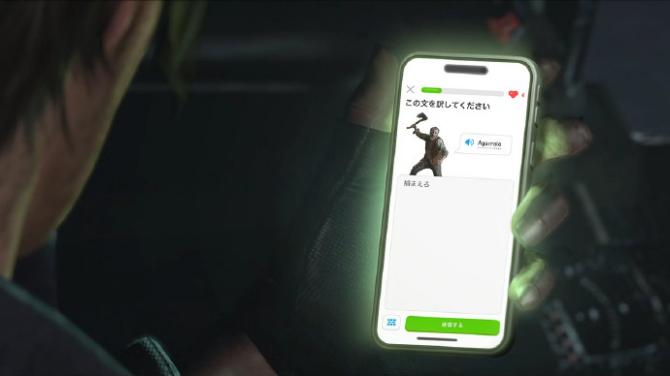 这次的联动中,《生化危机》系列的主角里昂成了“为西班牙语苦恼的学员”,里昂曾在《生化危机4》中有西班牙背景的任务,这个设定倒是也说得过去。多邻国标志的绿鸟则一直追着里昂督促他学习西语完成每日课程。