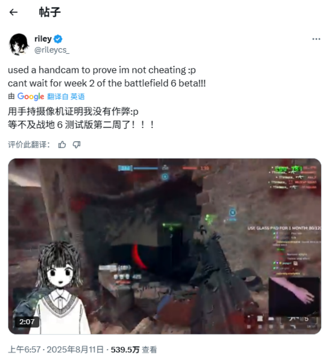 不过,riley_cs还是说,她打算换一款新的游戏,同时也会和《战地6》做一次短暂的告别。玩家希望EA可以在反作弊方面做得更好,这样才能保证游戏的公平性。