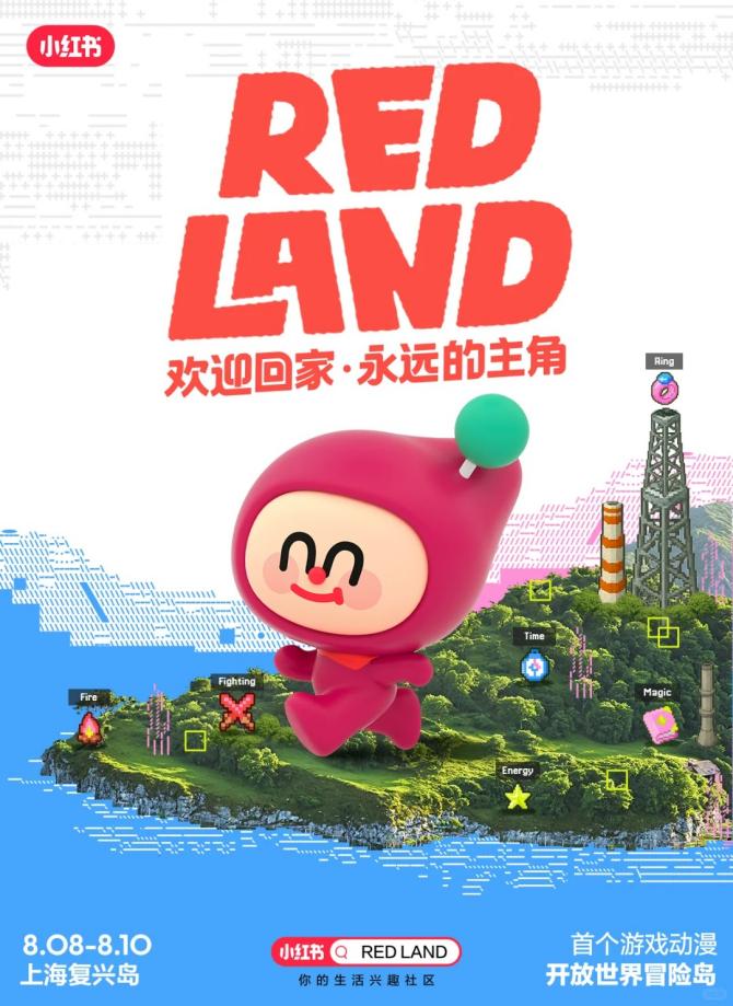 小红书于2025年7月16日正式官宣,将于8月8日至10日在上海杨浦复兴岛打造全球首个开放世界冒险岛活动“RED LAND”。作为小红书首个面向游戏与二次元爱好者的超大型线下IP,活动以“2.5次元开放世界”为核心概念,突破次元壁,融合虚拟与现实体验。
