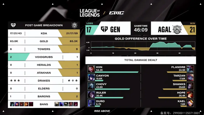 在EWC赛场上,AG.AL与GEN之间展开了一场极为精彩刺激的大战。GEN最后一局稳健发挥,拒绝AG.AL让二追三的可能性,最终夺得EWC英雄联盟项目的冠军