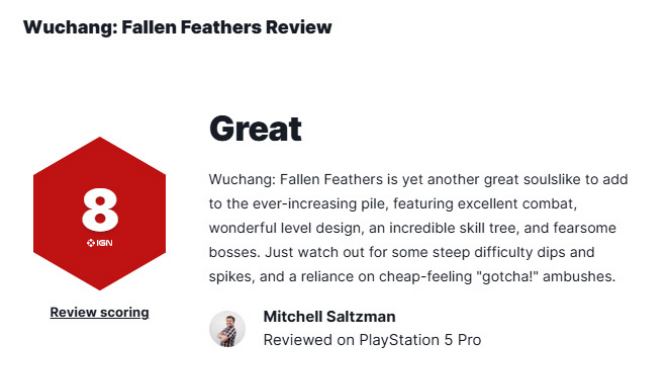 评分成绩:多家媒体狂打高分。IGN给出8分好评,盛赞战斗系统快节奏又灵活,技能树设计堪称业界顶级;IGN中国更猛,直接飙到9分,夸地图设计和探索反馈超出色;DualShockers也给9分,称地图能媲美《黑暗之魂》,Boss战超震撼!