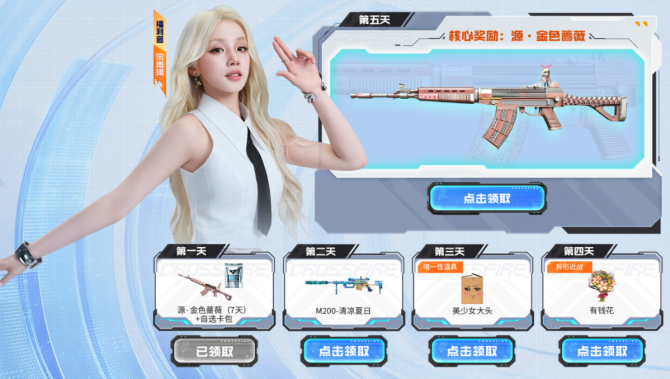 宋雨琦福利包:登录就赚翻。作为本次福利官,宋雨琦带来的福利超实在!8月1日前登录游戏,累计天数就能解锁源·金色蔷薇+自选卡包、M200-清凉夏日这些好东西,甚至还有美少女大头和有钱花道具,轻松到手不费劲!