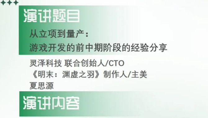 主题是《从立项到量产:游戏开发的前中期阶段的经验分享》,打算全方位讲讲游戏从最开始立项,到企划、制作,再到宣传发行整个过程的管理经验,还准备把开发中遇到的各种难题和解决办法分享出来。