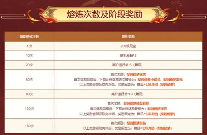 每次熔炼必定获得道行或经验数值奖励,且累计次数可解锁阶段赠礼。