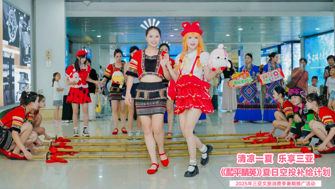 机场快闪:次元壁彻底破了!《和平精英》的Coser们直接和黎族少女在凤凰机场同台蹦跶,竹竿舞跳得那叫一个欢,刚下飞机的游客直接懵圈:“这欢迎仪式比空投还惊喜!”现场发的盲盒更狠,里面塞着游艇船票、景区优惠券,手慢的都抢不到!