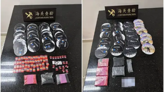第一波:长裙藏货,步伐出卖破绽。7月24日晚,穿长裙的女旅客走绿色通道时步伐僵硬,关员一查直接懵了——腰腹和大腿用塑料膜绑着320张《明末》光盘,密不透风得像裹了层铠甲。估计她自己都没想到,走路姿势成了最大破绽!