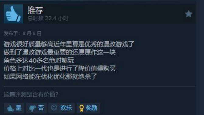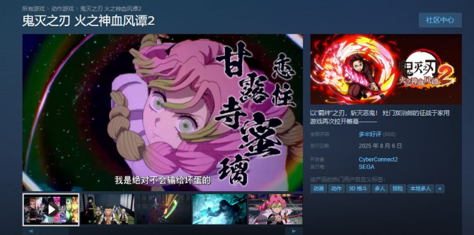 《鬼灭之刃 火之神血风谭2》这波直接给漫改游戏长脸了!8月6日登陆Steam后,668条评论里达到了78%好评,稳稳拿下“多半好评”,玩家直言“这才是懂原作的漫改”!