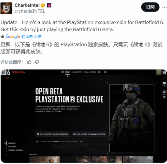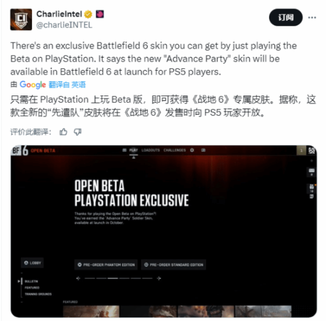 PS5专属福利:只要在PS5上启动《战地6》的Beta测试,不用花一分钱,也不用肝任何任务,等游戏正式发售时,这皮肤就自动到账。官方这波操作,让PS5玩家直呼“血赚”,毕竟这种无门槛福利,错过可就拍大腿了!