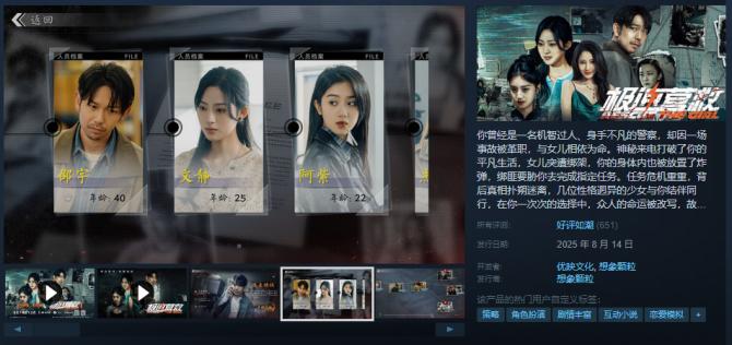 由《毛骗》原班团队打造的真人互动影游《极速营救》于8月14日正式上线,而仅仅1天它就获得了97%的好评率,Steam评价显示为好评如潮。玩家称赞《极速营救》“剧情逻辑严谨”“演技自然不尬”“沉浸感强”,直言这才是影游应该有的水准。