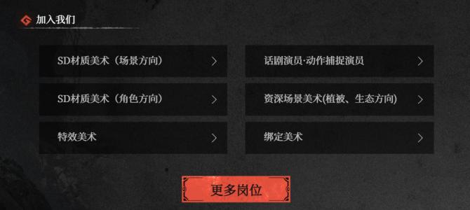 热门岗位:有SD材质美术(场景方向)、SD材质美术(角色方向)、特效美术、话剧演员·动作捕捉演员、资深场景美术(植被、生态方向)和绑定美术。