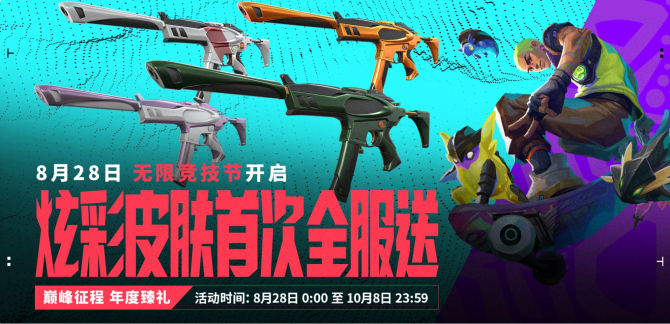 《无畏契约》8月28日开启无限竞技节,累计签到15天就可以免费领取无限竞技【骇灵】和3套炫彩皮肤。活动持续到10月8号晚上。注意是端游哦,而且只含国服。