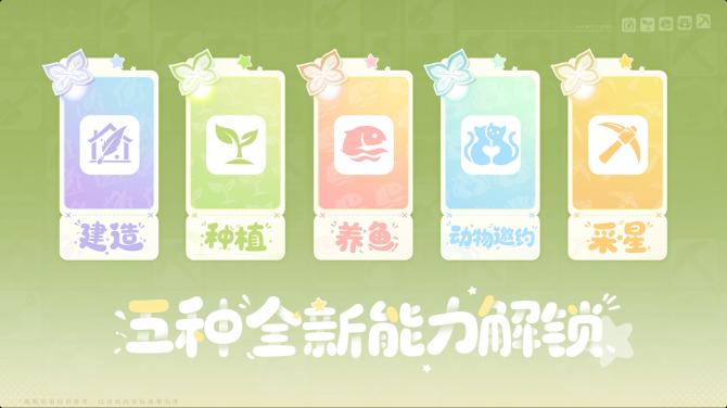 养鱼玩法,通过钓鱼可以获取稀有鱼苗,投放到鱼塘里投喂鱼食,长成后可以出售给精灵兑换资源"万象星实"。