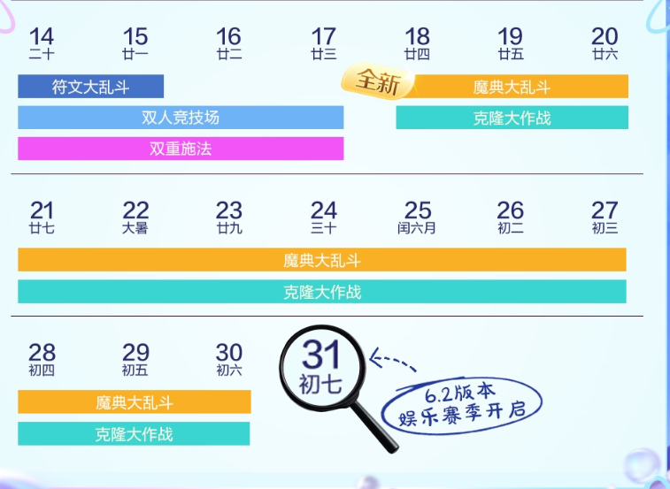 还有个惊喜,在 7 月 5 日 - 7 月 18 日开放期间,玩魔典大乱斗有 50% 的概率触发彩蛋,像德莱联盟、最后的波纹、帽子叠叠乐、金币爆炸、奥恩祝福这 5 种彩蛋,单局只会触发一种,但每一种都能给游戏增添超多乐趣。怎么样,7 月 18 日,约上小伙伴,一起去魔典大乱斗里大显身手吧!