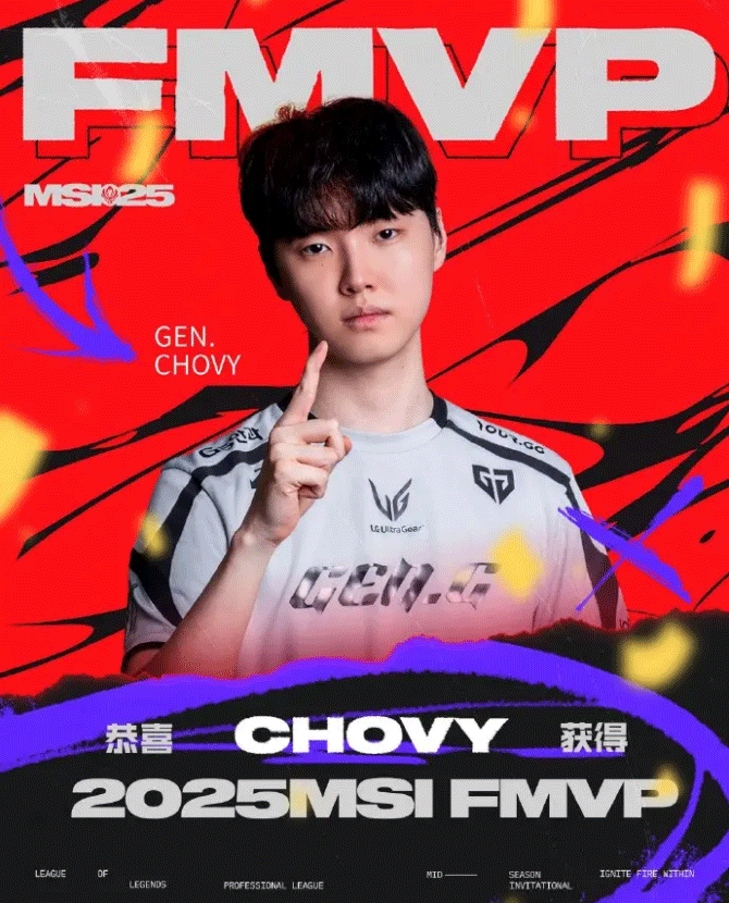 Chovy选手获得本次MSI季中冠军赛的FMVP~!