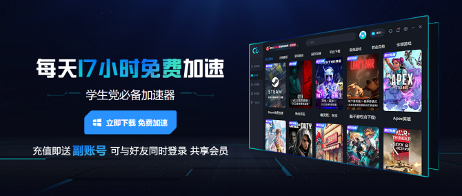 CC加速器每天有17个小时的免费加速时间,休闲玩家们每天17小时完全够用,相当于免费享受加速服务了。电竞级的专线加速,可以保证玩家在进行游戏加速时稳定不掉线。购买套餐之后,获得副账号,还可以分享给好友,大家可以共享会员。大学生还享有学生优惠,轻松认证,超划算。学生套餐也享副账户福利,舍友可以开黑一起玩。