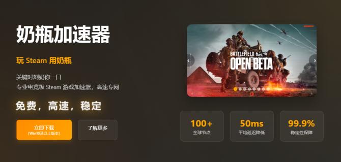 虎牙旗下的奶瓶加速器是专业电竞级的Steam游戏加速器,具有高速转往,关键时刻奶你一口。让玩家体验到高速、免费、稳定的游戏体验。奶瓶加速器针对Steam平台进行了专门的优化,支持CS2、Dota2、PUBG等所有热门游戏,提供最佳的游戏体验。全球100多个高速节点,奶瓶会为玩家智能选择最优的加速路径,确保稳定快速的网络连接。