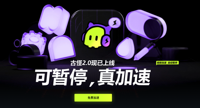 真免费时段:每日0-16点免费加速16小时,效果与付费一致,覆盖《Apex》《云顶之弈》等热门游戏;输入口令 “古怪666” 或 “免费加速” 可额外领20小时可暂停时长。