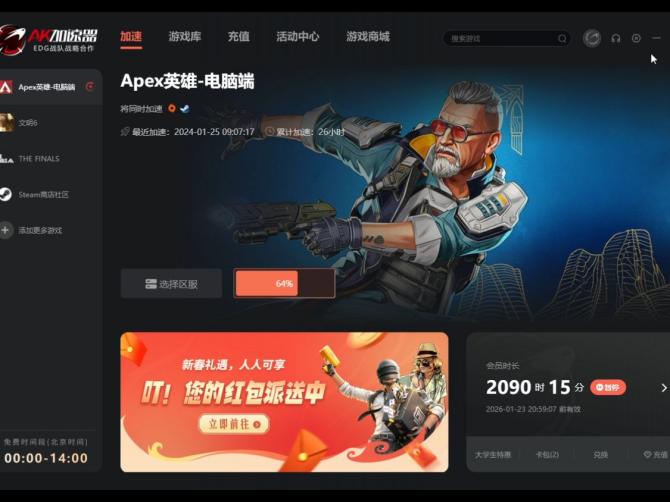 真免费加速:每日0-14点免费加速,效果与付费一致,覆盖《Apex》《暗黑破坏神4》等热门游戏;输入口令 【来啦】 可兑换额外48小时可暂停时长。