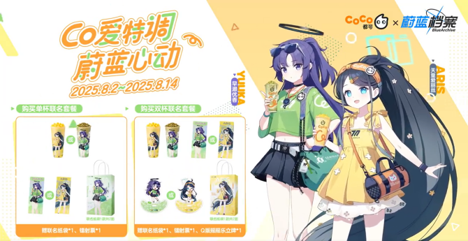 《蔚蓝档案》与Coco的联动马上就要开启咯,这次有两个联动角色,套餐分为单杯套餐和双杯套餐,赠送周边也不一样,一起来看看吧。