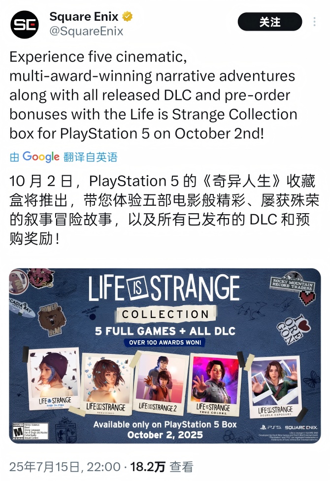 近日,Square Enix官方宣布称PlayStation的《奇异人生》收藏盒即将推出,全系列合集登录PS5。