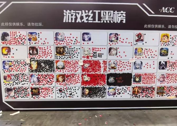 最近长沙漫展上,玩家自发搞了个游戏红黑榜,红贴纸代表喜欢,黑贴纸吐槽,贴满了整整一面墙,看下来还挺有意思——