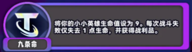 将你的小小英雄生命值设为9。每次战斗失败仅失去1点生命,并获得战利品。