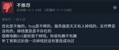 优化是不做的,bug是不修的,服务器是天天有人掉线的,反作弊是没有的,掉线重连是不存在的