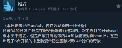 怀疑BA的导弹拦截是在服务器端进行结算的,跟老外打的时候sead根本突不进去,但是自家开阔地带的AA却总能被对面sead掉,甚至出现了6台开机的中重防混合防空圈被2架EA6创烂的奇景