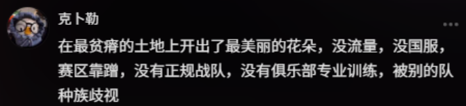 在最贫瘠的土地上开出了最美丽的花朵,没流量,没国服,赛区靠蹭,没有正规战队,没有俱乐部专业训练,被别的队种族歧视。