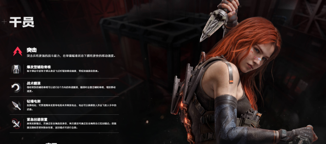 克莱尔・安・拜尔斯(疾风):钻墙电刺缴械敌方武器,紧急回避装置提供安全锚点,适合绕后突袭。
