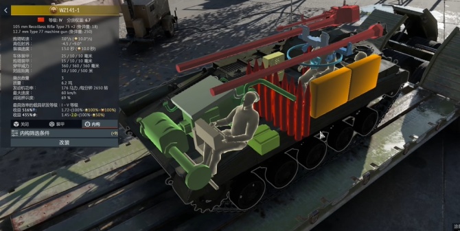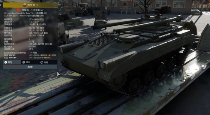 游戏中采用的是现实中的一号原型车设计,武器配置为两门105无后坐力炮+一挺12.7机枪。