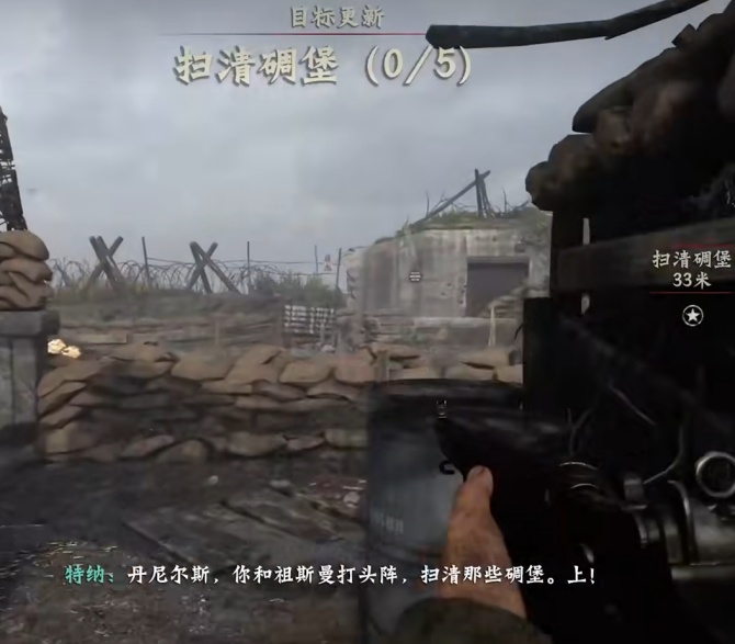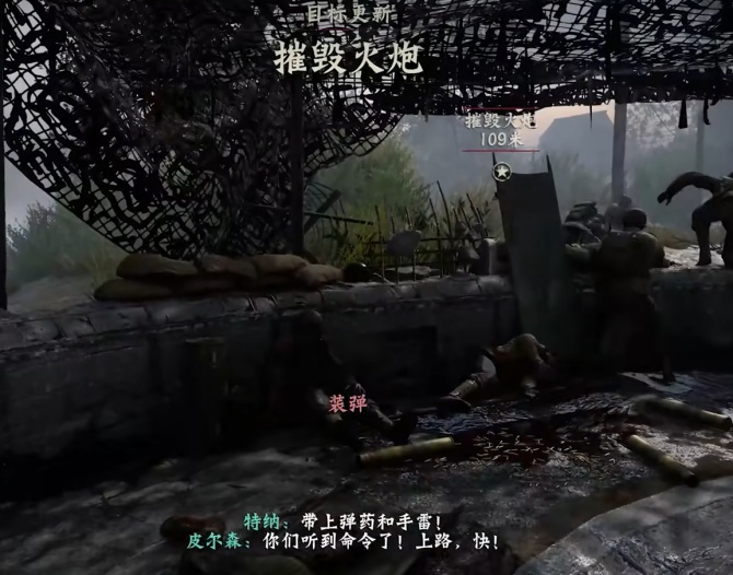 清理最后一个碉堡时,会在转角处冒出来一个德军士兵和我们进行近战最终会触发队友受伤剧情,需要我们把队友祖斯曼拖拽至安全区治疗。