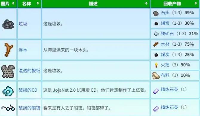 回收机:用于垃圾回收,钓鱼4级解锁配方,制造材料(木材25个、 石头25个、铁锭1个)