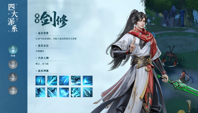 剑修,顾名思义以剑为主,攻击速度快,输出能力强,且有一定坦度,比较推荐新手玩家选择。剑修无论是单打独斗还是群体输出都还不错,各种模式中都能适应。且操作相对来说比较简单,容错率也比较高,不容易浪费资源,前期主要升级就可打副本,还有控制技能和后期伤害。
