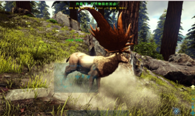 被动生物,可骑乘,生命值一般,移速一般,伤害低,负重一般,大角鹿骑乘走路时会有嗒嗒嗒的脆响,雄性带角雌性不带角
