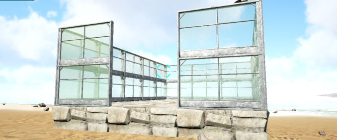 水管部分,我们来到先前留了一格的地方,在他空格对面的地基装上十字水管,再在十字水管另一头按上垂直水管,从垂直水管向温室的这边延升十字水管到门这边,最后在每个十字水管上装上龙头,再封上空的那块。