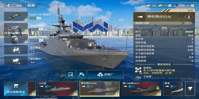 特伦特号(P224)并非最耀眼的一级船,但是它拥有高耐久和高输出的特性,适和意识上比较莽的新玩家,因此它是新手阶段最稳定的过渡选择。