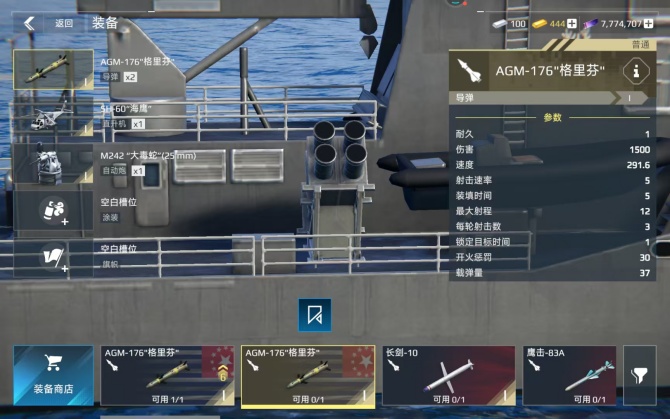升级的话,建议主要升级导弹伤害,格里芬导弹的三连发高压制特性的确好用,但是导弹低耐久且伤害实在太低,可以更换RGM84,拥有单发高伤害,可以有效杀伤。