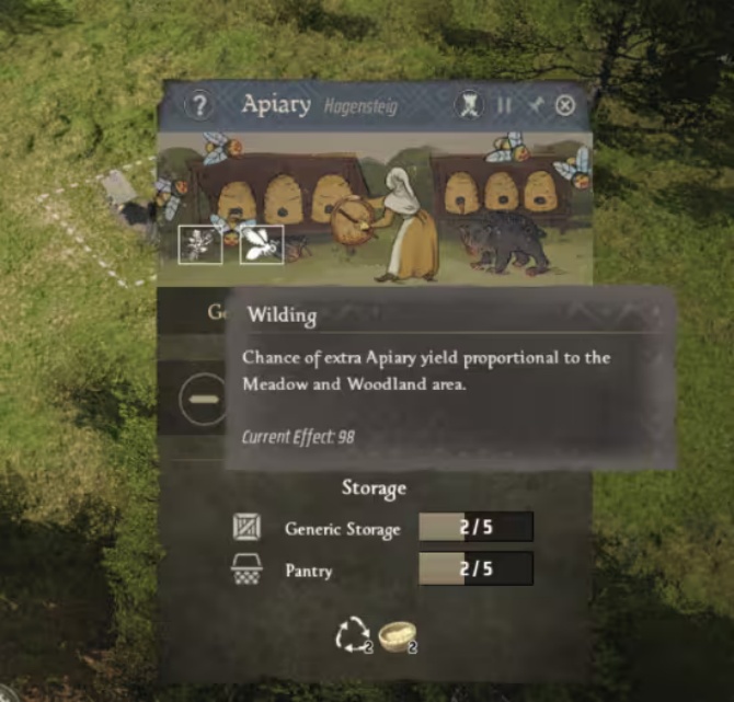 旧版本中,玩家虽然可以自由布局建筑,但是地图资源和环境的关联性比较差。在本次更新中将会引入环境加成机制,建筑与地形之间将会产生互动:例如养蜂场在林地中效率提升,果园因临近养蜂场获得额外授粉加成。