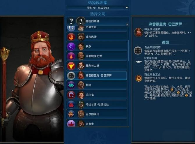 德国本身以其逆天的工业区产值和天生比别人多一个区域位而闻名,两位领袖都非常强力,去别是红胡子好上手,路二需要一定区域规划能力,但玩好了强度比红胡子高。萌新还是建议红胡子