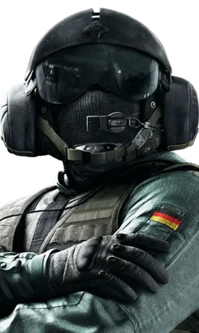 Jager,原名Marius Streicher,出身德国GSG9大队,既是直升机飞行员,也是技术专家双重身份。他可以部署“ADS-MK IV‘喜鹊’主动防御系统”,改系统可以拦截飞行中的投掷物,包括手雷、闪光弹、Fuze的霰射炸药等。作为防守方布防手,他能够利用ADS创造防守优势。